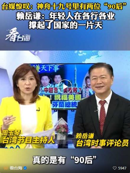 “江山代有才人出。”台湾时事评论员赖岳谦也表示,中国大陆太有未来了,因为都是年轻人的天下,在太空事业上,这些“90后”都开始挑起国家的重责了,真的是年轻人撑起一片天。
