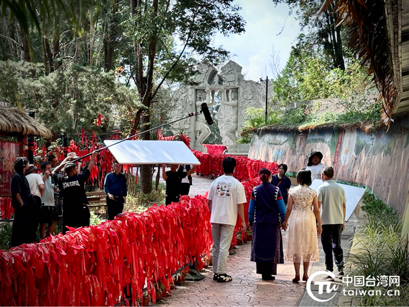 11月1日,由云南省台办、中国台湾网、云南冰湖文化传媒合作拍摄的《风吹茶花香两岸》微短剧在云南省墨江县开机。(中国台湾网 叶春禄 摄)