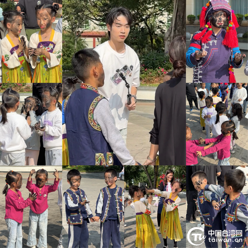 【拍摄现场】演职员体验“摸你黒”后合影留念。(中国台湾网 叶春禄 摄)