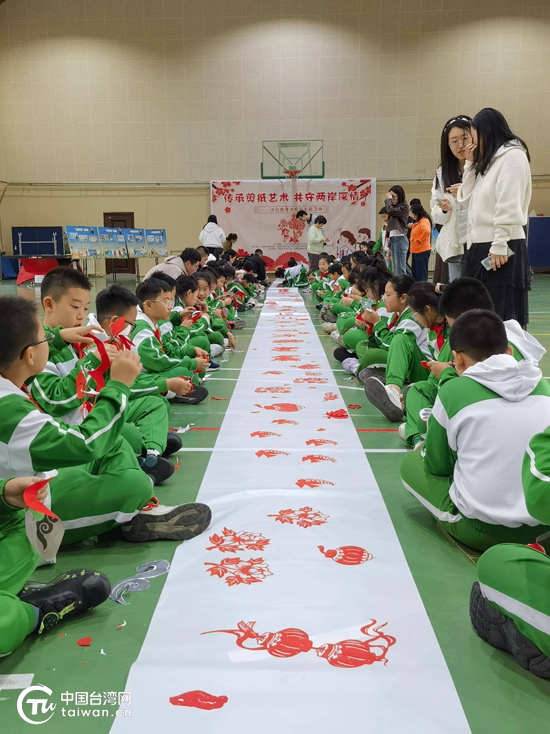 同学们共同制作20米长的剪纸长卷。(中国台湾网发)