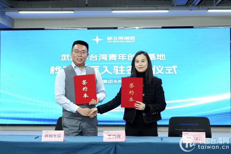 台湾桦科智慧生医有限公司与新北辰(湖北)生物科技集团有限公司现场签约入驻。(中国台湾网发)