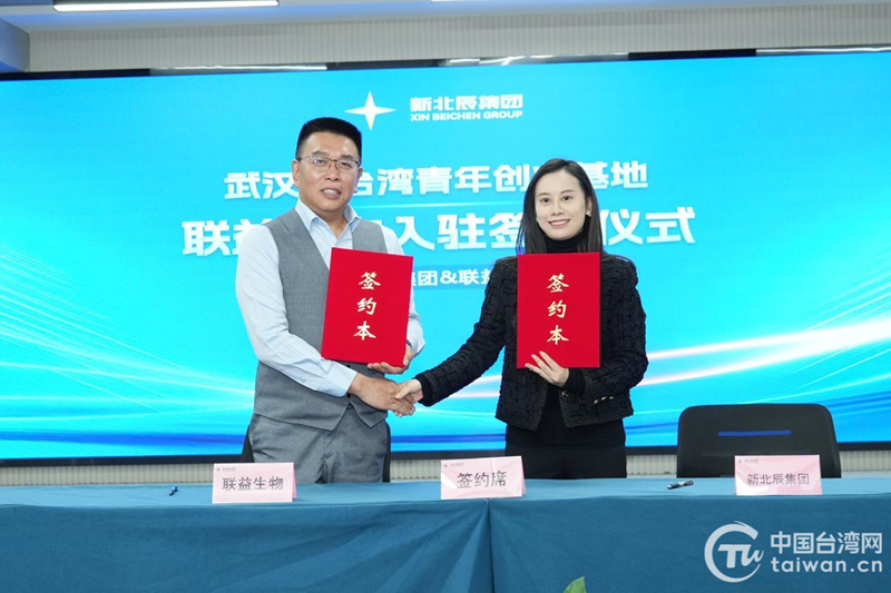 台湾联益生物科技有限公司与新北辰(湖北)生物科技集团有限公司现场签约入驻。(中国台湾网发)