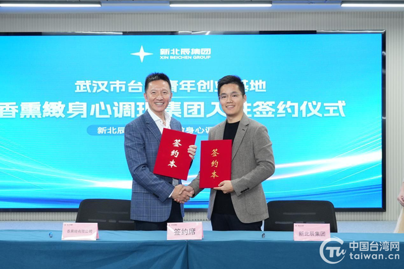 台湾香薰緻有限公司与新北辰(湖北)生物科技集团有限公司现场签约入驻。(中国台湾网发)