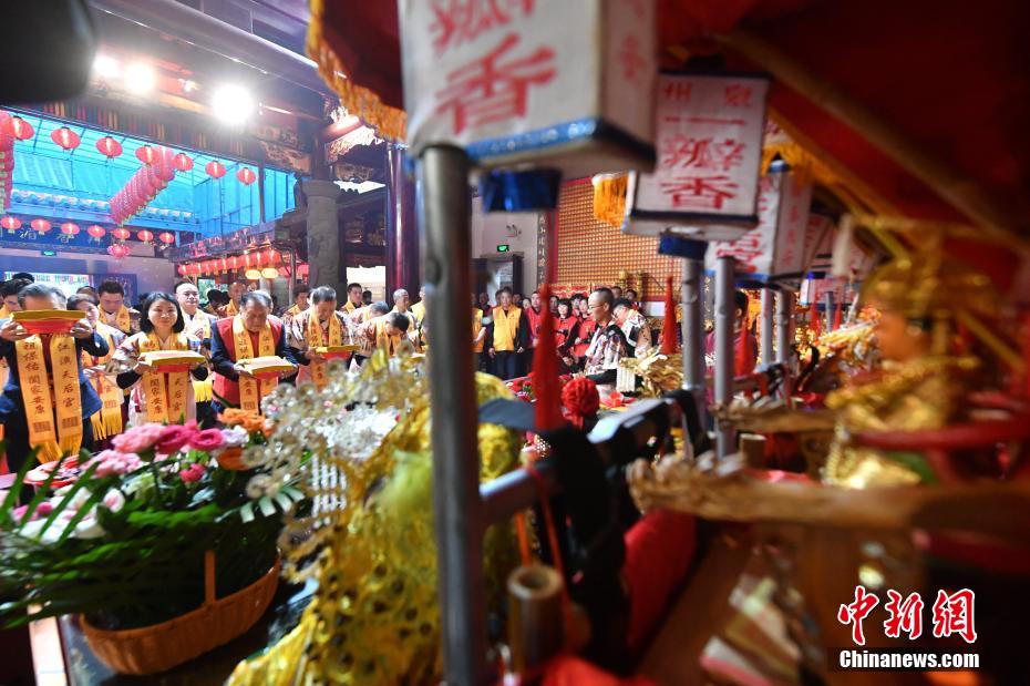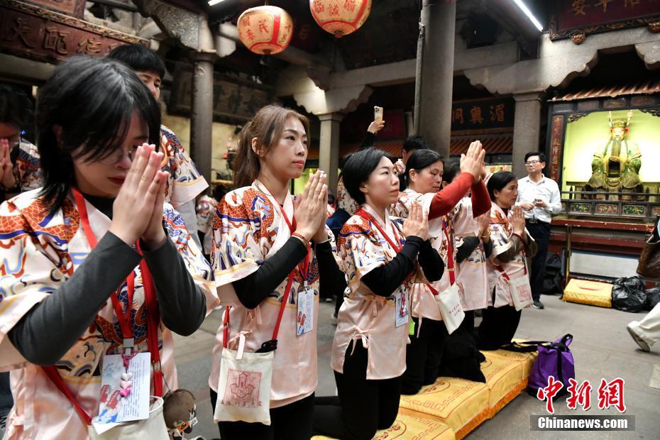 11月21日,两岸青年在泉州蟳埔顺济宫向妈祖举行三献礼仪式。