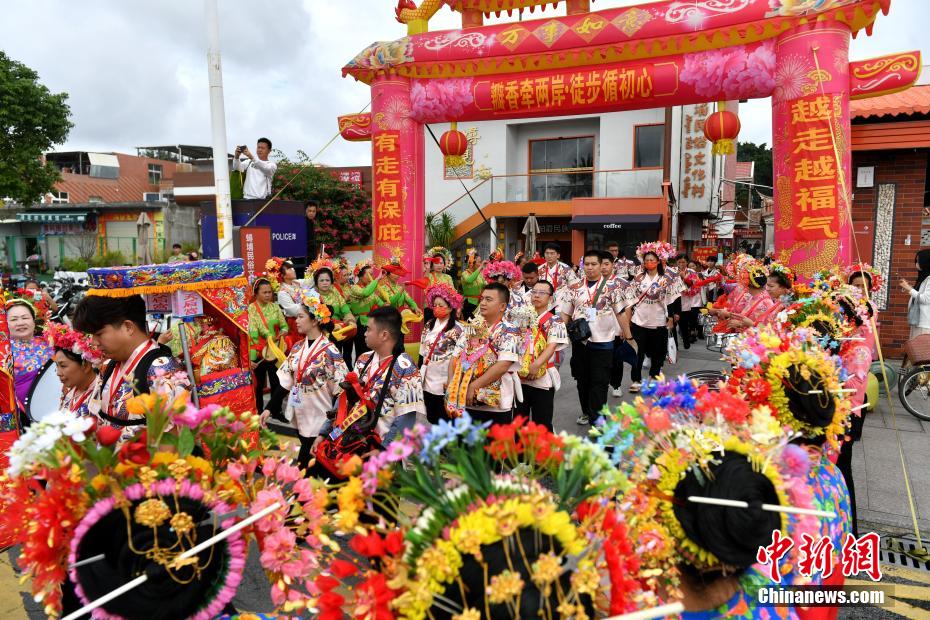 11月23日,两岸青年抵达福建莆田城厢区灵岩殿,当地民众夹道欢迎。