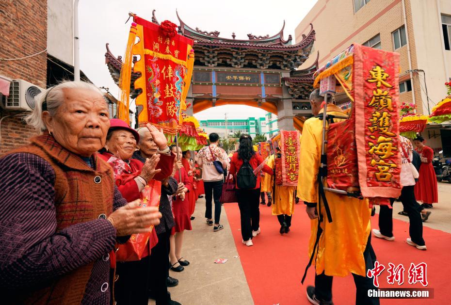 11月21日,泉州蟳埔村当地民众欢送两岸青年。