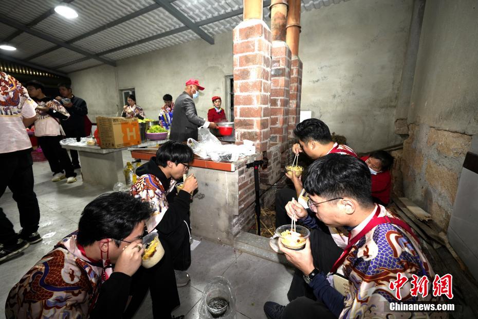 11月23日晚,两岸青年在福建莆田城厢区福陵宫厨房吃饭。
