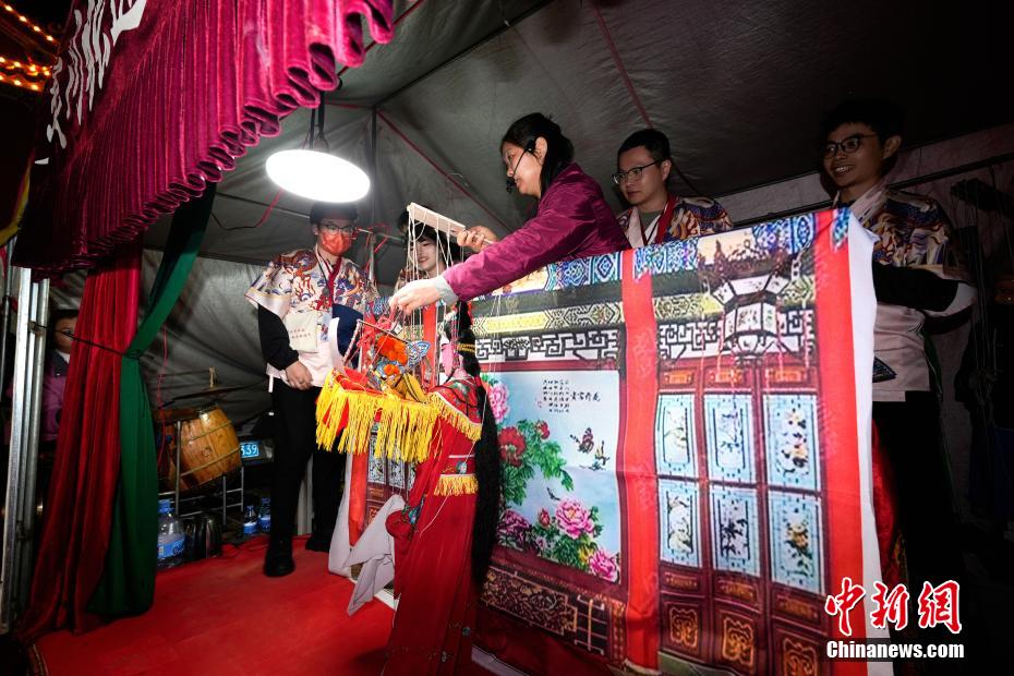 11月23日晚,福建莆田,两岸青年了解莆仙木偶戏。