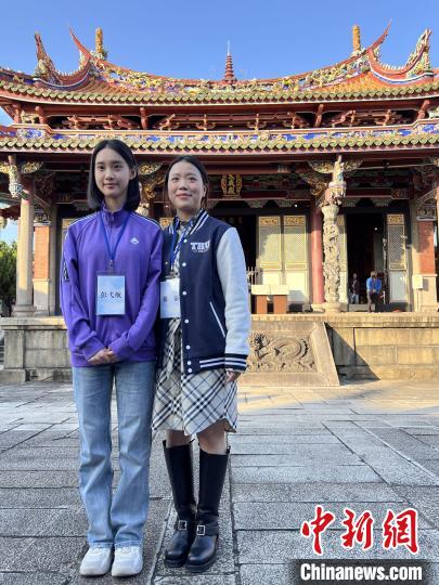 11月28日,大陆高校师生团参观台北孔庙。图为清华大学学生彭弋航(左)和杨倩。中新社记者 路梅 摄
