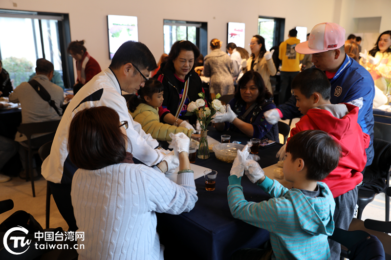参观结束后,台湾同胞们还在鞍山村的构城·安屿人文聚落内体验了年糕饺制作。在工作人员的讲解与示范下,大家兴致勃勃地戴上手套,有模有样地学做了起来。刚蒸好的年糕香热软糯,大家小心翼翼地将年糕揉捻摊开,再包裹上自己喜欢的馅料,就完成了一个个形状各异的年糕饺。