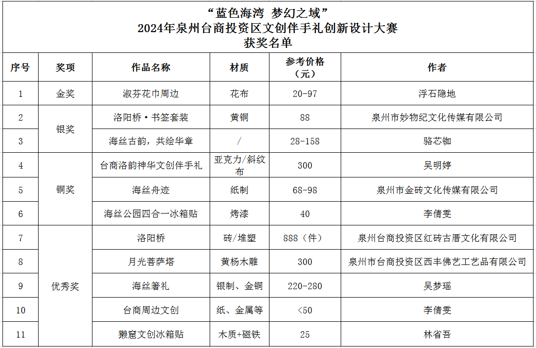 2024年泉州台商投资区文创伴手礼创新设计大赛颁奖