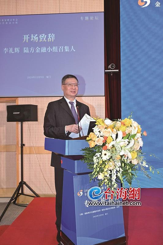金融小组陆方召集人李礼辉:创新两岸金融服务体系关键在于深耕大陆市场,优化金融服务,共享先进经验,促进两岸同心,推动两岸金融业高质量融合发展。希望两岸企业家、金融家凝聚智慧力量,用好两岸企业家峰会这一重要平台,搭建两岸产业金融深入交流合作桥梁,注入金融源头活水,两岸携手,共同助力台企台胞在大陆的事业发展,共同促进海峡两岸融合,为两岸民众带来更大福祉。