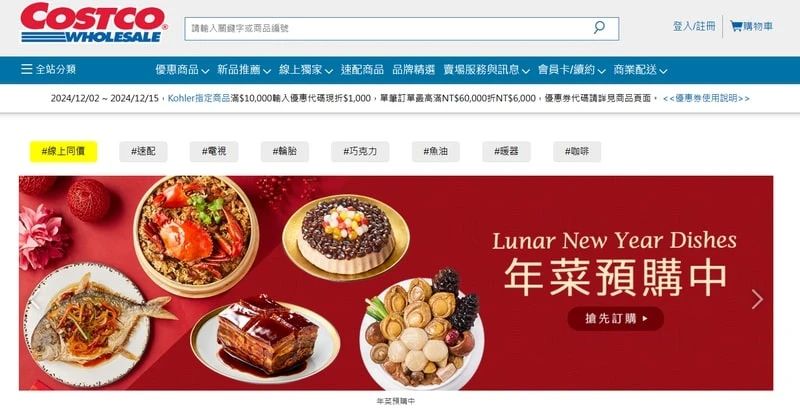 距离2025年春节还有不到50天,台湾许多餐厅、超市已开始进行年菜预购。近日有某台湾网红发现,零售商Costco(台湾称“好市多”,大陆称“开市客”)在台湾官网刊登的年菜预购广告,英文介绍写的是“Chinese New Year”,随后其发信给好市多,让好市多“考虑到用字精准的重要性”,而好市多在不到7小时,就将台湾官网原本的“Chinese New Year”改为“Lunar New Year”。此事已在岛内引发讨论。