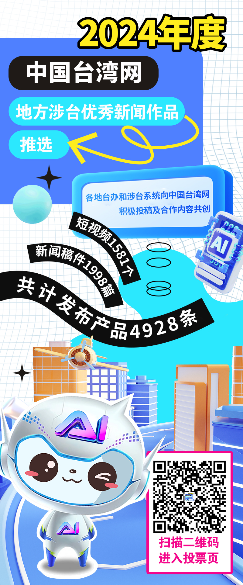 为盘点、梳理过去一年来地方涉台活动精彩亮点,展示各地涉台宣传报道成果,经国台办批准,中国台湾网“2024年度地方涉台优秀新闻作品”推选活动于1月8日正式上线启动。