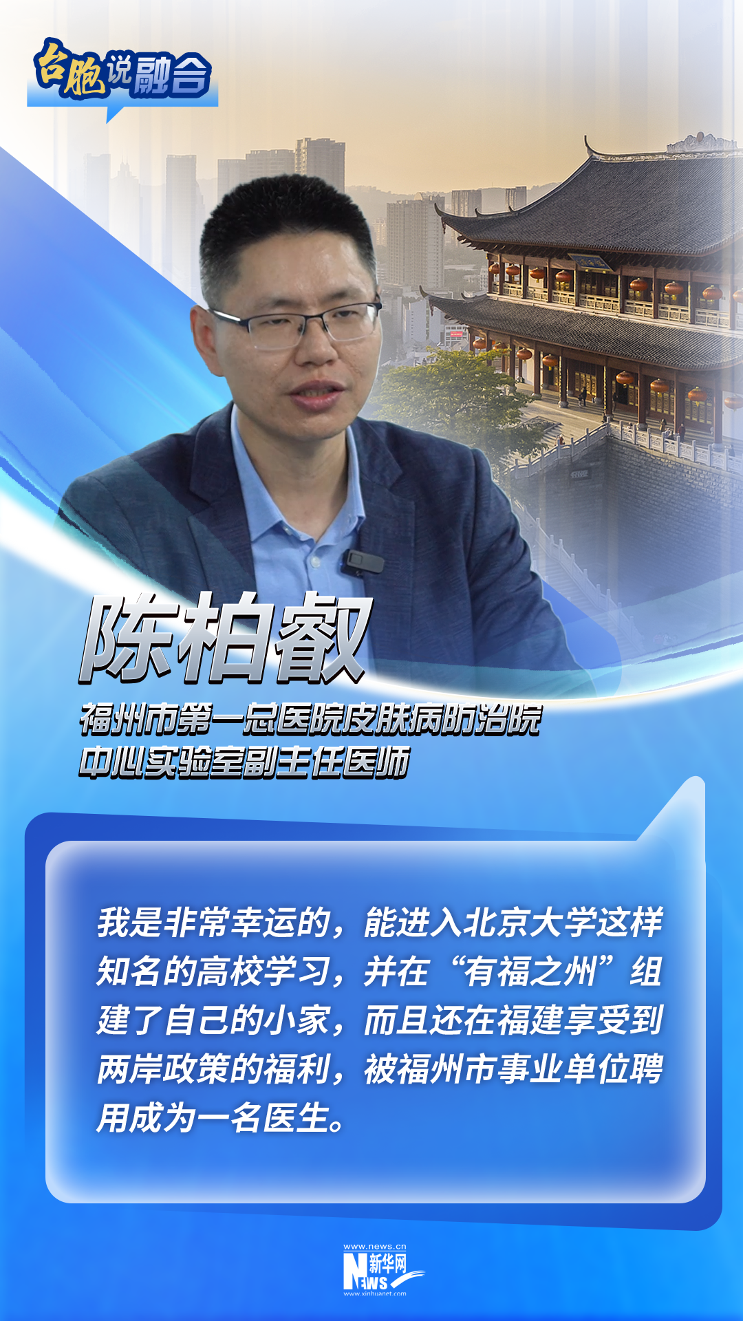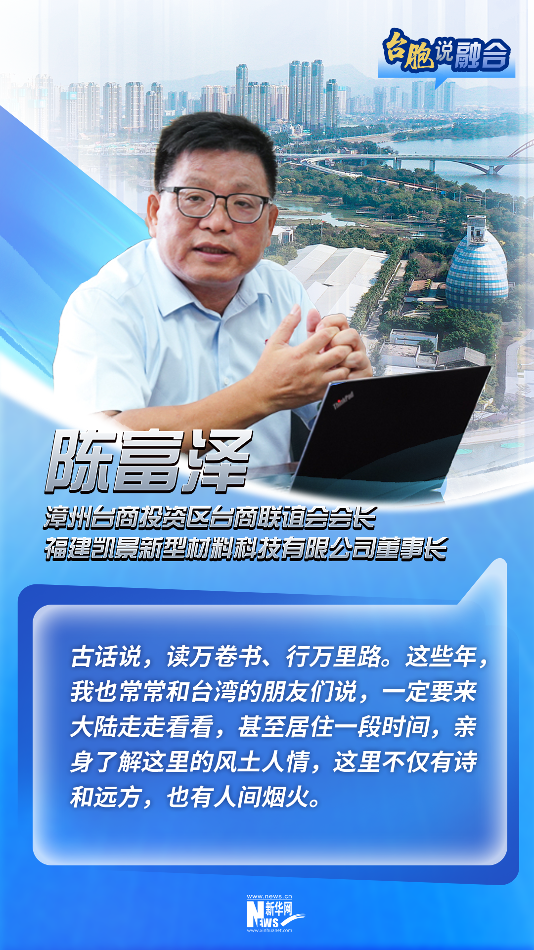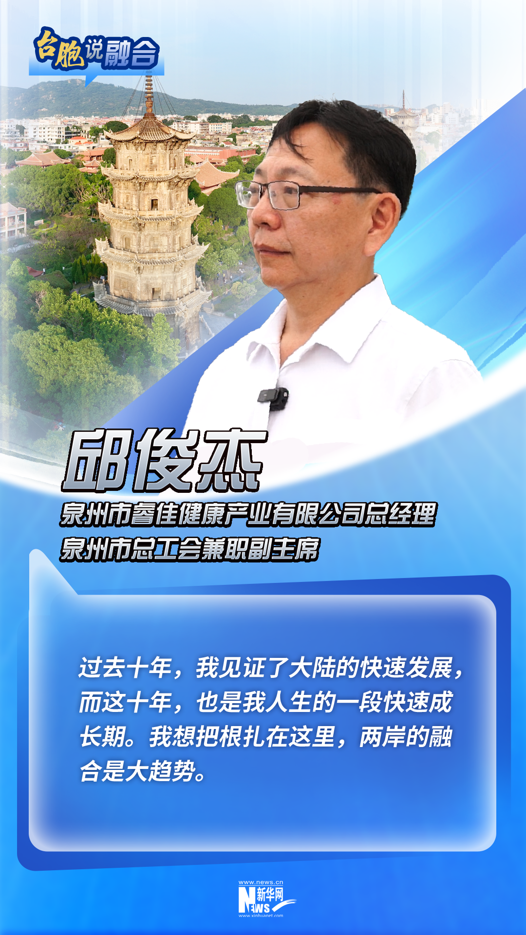 在福建这片探索两岸融合发展新路的热土上,台胞的两岸融合故事正生动上演。这其中,有刚刚开始创业的青年,也有早年跟随父亲来大陆投资办厂的“创1.5代”;有帮助台胞在大陆发展的台商,也有助力两岸青年走亲走近的棒球教练;有在福建公立医院工作的医生,也有溯源中华民族文化根脉的学者……让我们通过他们的讲述,感受两岸融合的方方面面。