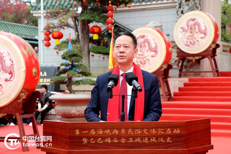 中国台湾网汕尾3月1日讯(记者 孙海伦 刘赛飞) 3月1日是农历二月初二,俗称“龙抬头”,第一届海峡两岸民俗文体汇启动暨碣石古卫城进城仪式在汕尾陆丰碣石玄武山成功举办,海峡两岸关系协会李文辉副会长、广东省台办主任钟挥锷、汕尾市市长郑海涛等领导嘉宾出席活动,台胞台青、台湾宫庙和文旅体行业协会代表、汕尾当地民众3000余人走进碣石古卫城,共襄两岸民俗体育交流盛举,共叙同胞亲情乡谊,共话中华民俗文化渊源,共同传承中华民族精神。