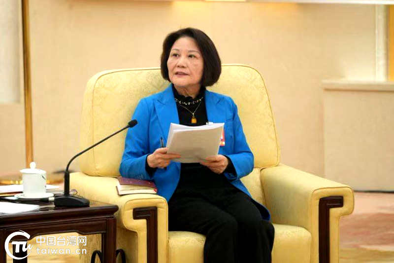 陈云英代表在十四届全国人大三次会议台湾省代表团全体会议结束后回答记者提问。(中国台湾网记者 麦旭涛 摄)