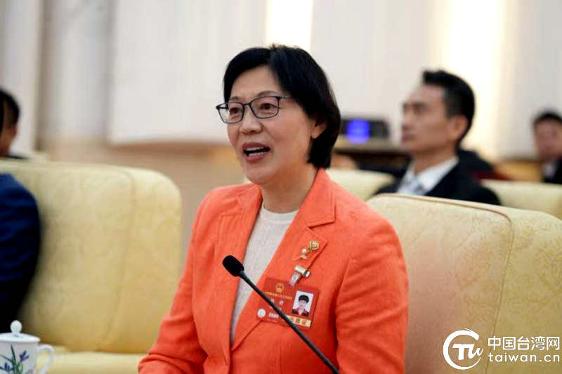 林青代表在十四届全国人大三次会议台湾省代表团全体会议结束后回答记者提问。(中国台湾网记者 麦旭涛 摄)