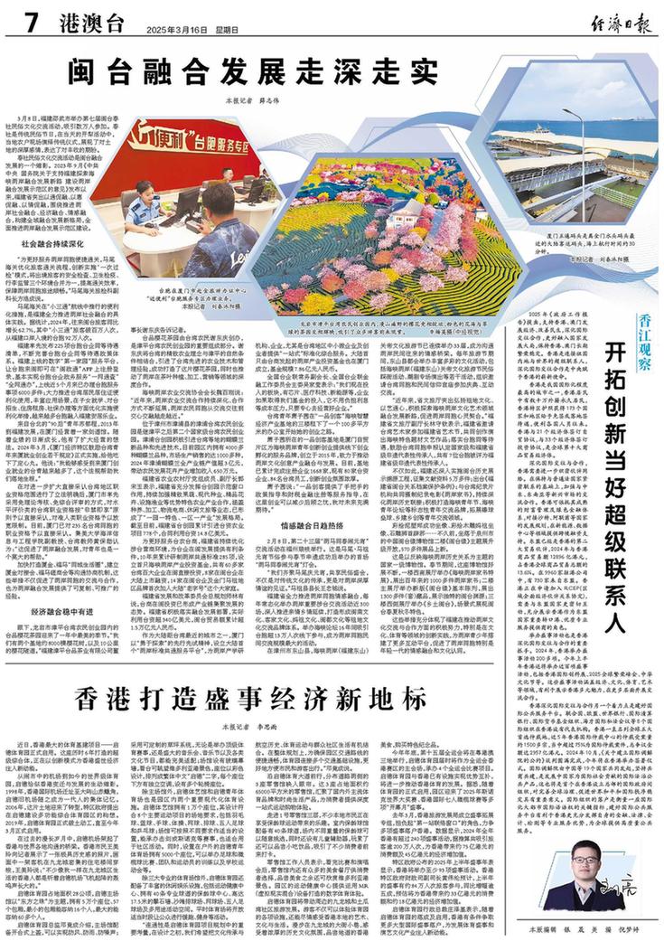 加快打造厦金、福马“同城生活圈”,建立厦金对接会、福马磋商会等沟通协商机制,这些举措不仅促进了两岸同胞的交流与合作,也为两岸融合发展提供了可复制、可推广的经验。