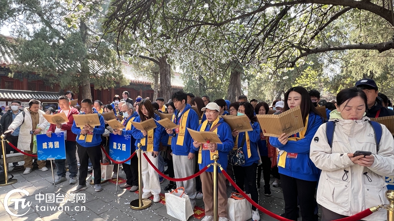 4月1日,在2025海峡两岸孔子文化春会之两岸青年同祭孔活动中,来自马英九文教基金会等团体的台湾同胞与大陆同胞并肩而立,齐声朗诵经典。(中国台湾网记者 孙路路 摄)