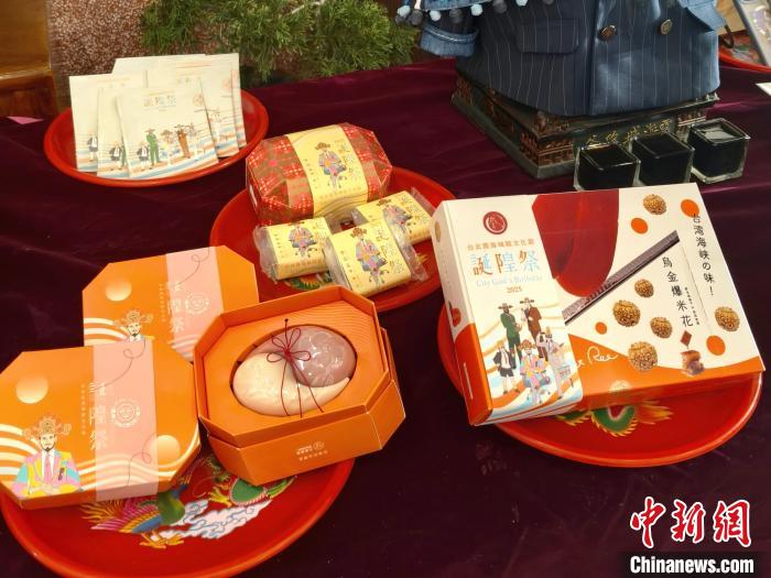 2025年5月24日至6月15日,“台北霞海城隍庙文化节——诞隍祭”即将登场,图为文化节推出的部分周边商品。中新社记者 张晓曦 摄