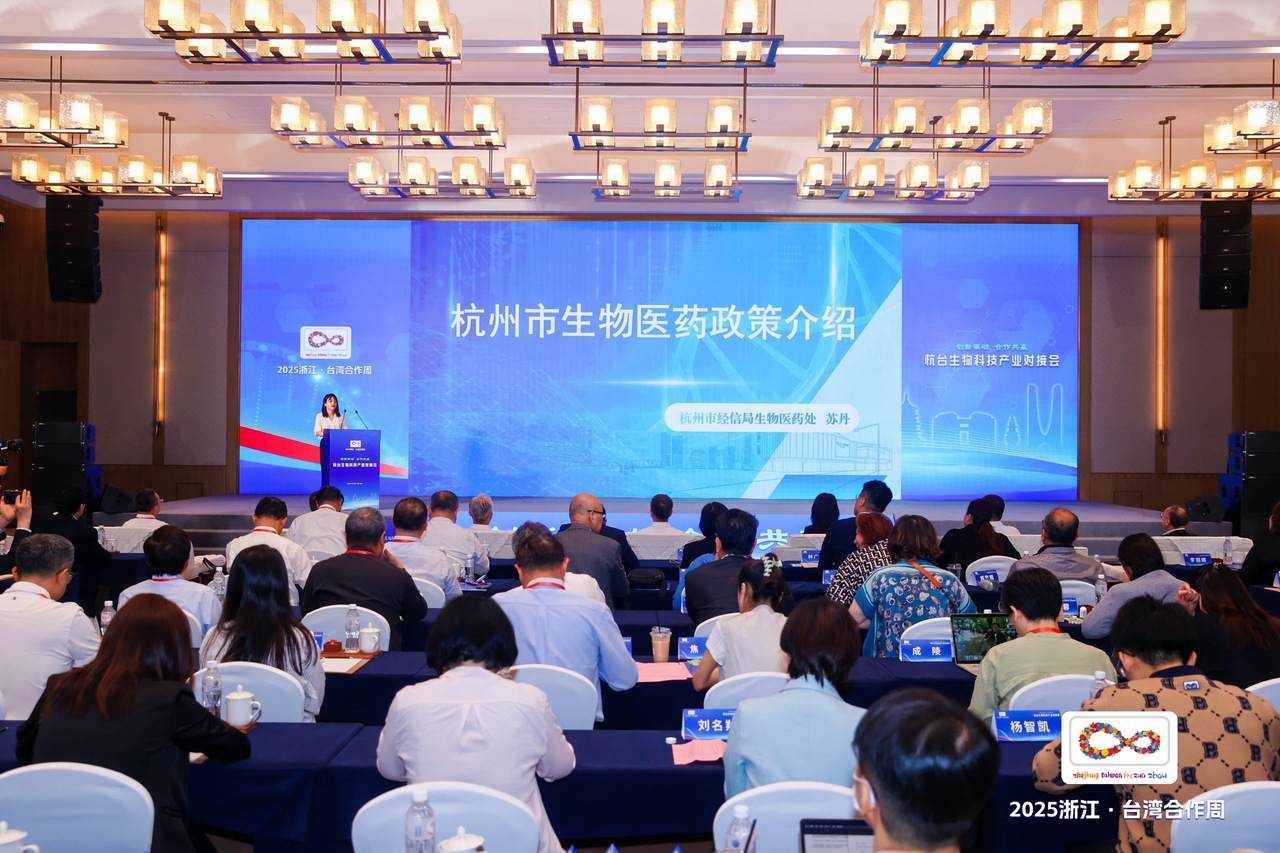 此次产业对接会作为2025浙江·台湾合作周专场活动之一,有来自海峡两岸150余位嘉宾相聚生物科技产业高地——杭州市钱塘区,共话生物科技产业未来,携手推动两岸产业合作。