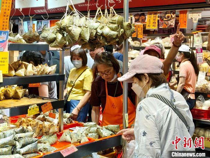 5月30日,台湾迎来端午节连假,各大市场粽香四溢,民众纷纷前往选购粽子等节庆美食。图为台北南门市场,民众排队选购粽子。中新社记者 张晓曦 摄