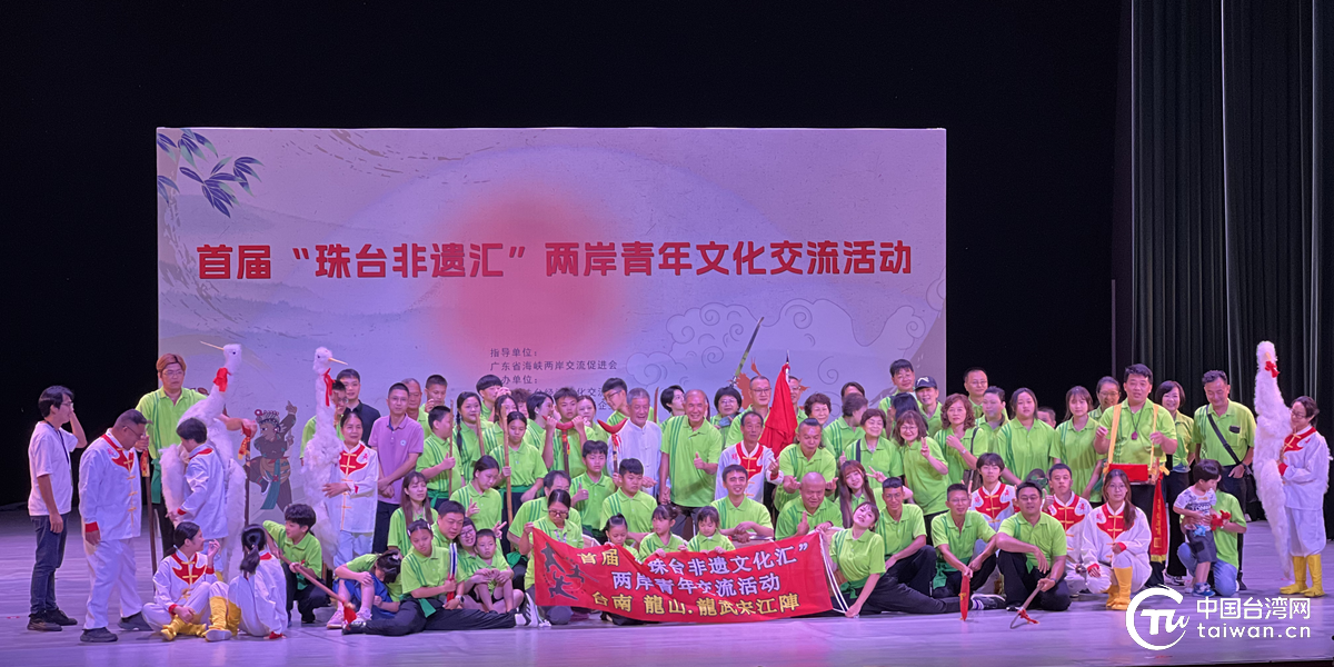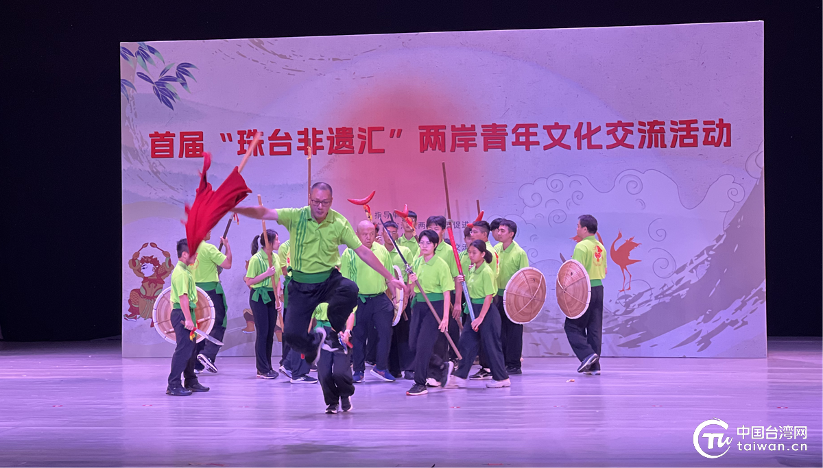 中国台湾网珠海7月11日讯(记者 马琳娜 李鑫) 7月10日上午,由广东省海峡两岸交流促进会指导,珠海市珠台经济文化交流协会联合珠海市金湾区台商协会主办的首届“珠台非遗汇”两岸青年文化交流活动非遗表演交流在金湾区文化馆隆重举行。来自台湾的宋江阵表演团与珠海本土三灶鹤舞传承人等近百名海峡两岸青年同台献艺,以非物质文化遗产为纽带,架起两岸文化交流的桥梁。