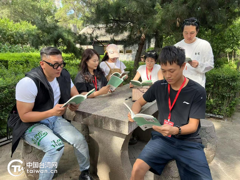 台湾青年媒体人在萧红故居的花园中共同诵读。(中国台湾网记者 刘琳 摄)
