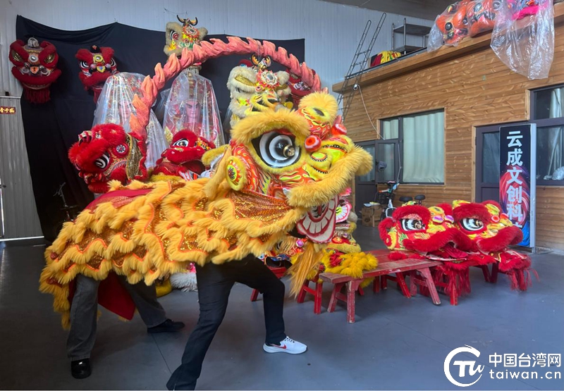 在刘家堡王吴村,台湾青年体验舞狮。(中国台湾网发)