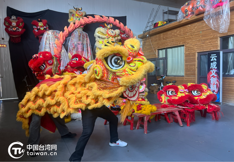在太原小店区刘家堡村,台湾青年体验舞狮。(中国台湾网记者 孙路路 摄)