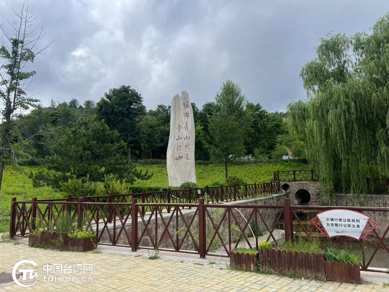 晋中乌金山后沟村中竖有山石,上刻“绿水青山就是金山银山”。(中国台湾网记者 孙路路 摄)