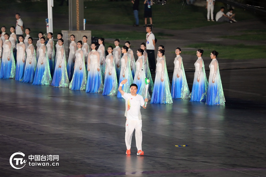中国斯诺克运动员丁俊晖作为本届世运会火炬手入场。(中国台湾网记者 尹赛楠 摄)