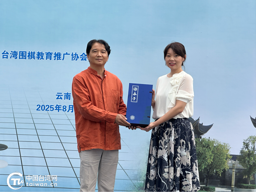 云南参赛队向台湾参赛队赠送保山永子棋(中国台湾网记者 叶春禄 摄)