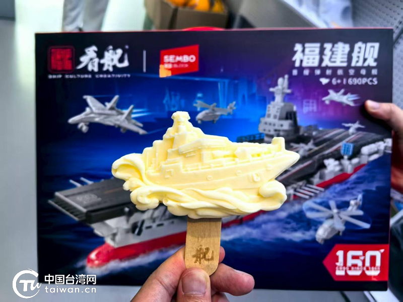 学生们购买的福建舰航母模型和文创雪糕。(中国台湾网记者 曹帅兵 摄)