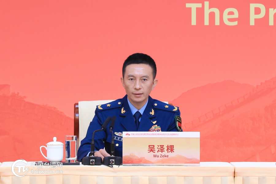 阅兵领导小组办公室副主任、中央军委联合参谋部作战局少将副局长吴泽棵答记者问。(中国台湾网记者 尹赛楠 摄)
