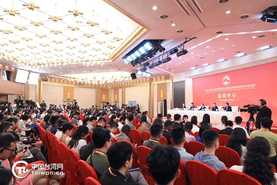 8月28日上午,中国人民抗日战争暨世界反法西斯战争胜利80周年纪念活动首场记者招待会在北京梅地亚新闻中心举行。(中国台湾网记者 尹赛楠 摄)
