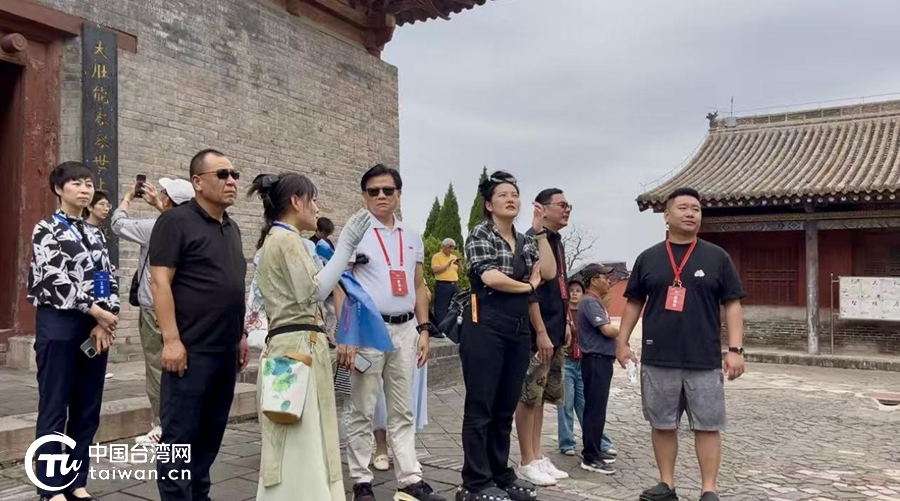 8月28日,台商台青嘉宾在广胜寺一隅聆听讲解员讲解寺内古建。(中国台湾网记者 刘琳 摄)