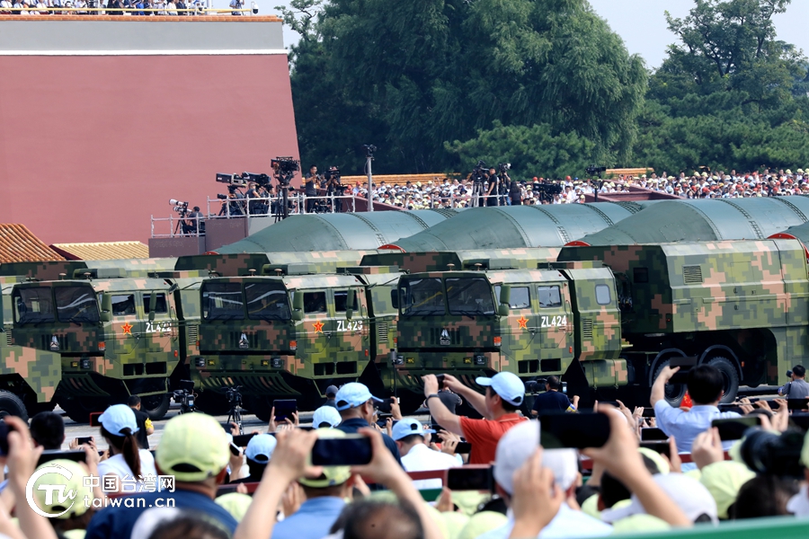 “东风-5C”液体洲际战略核导弹亮相,其打击范围可覆盖全球。(中国台湾网记者 尹赛楠 摄)