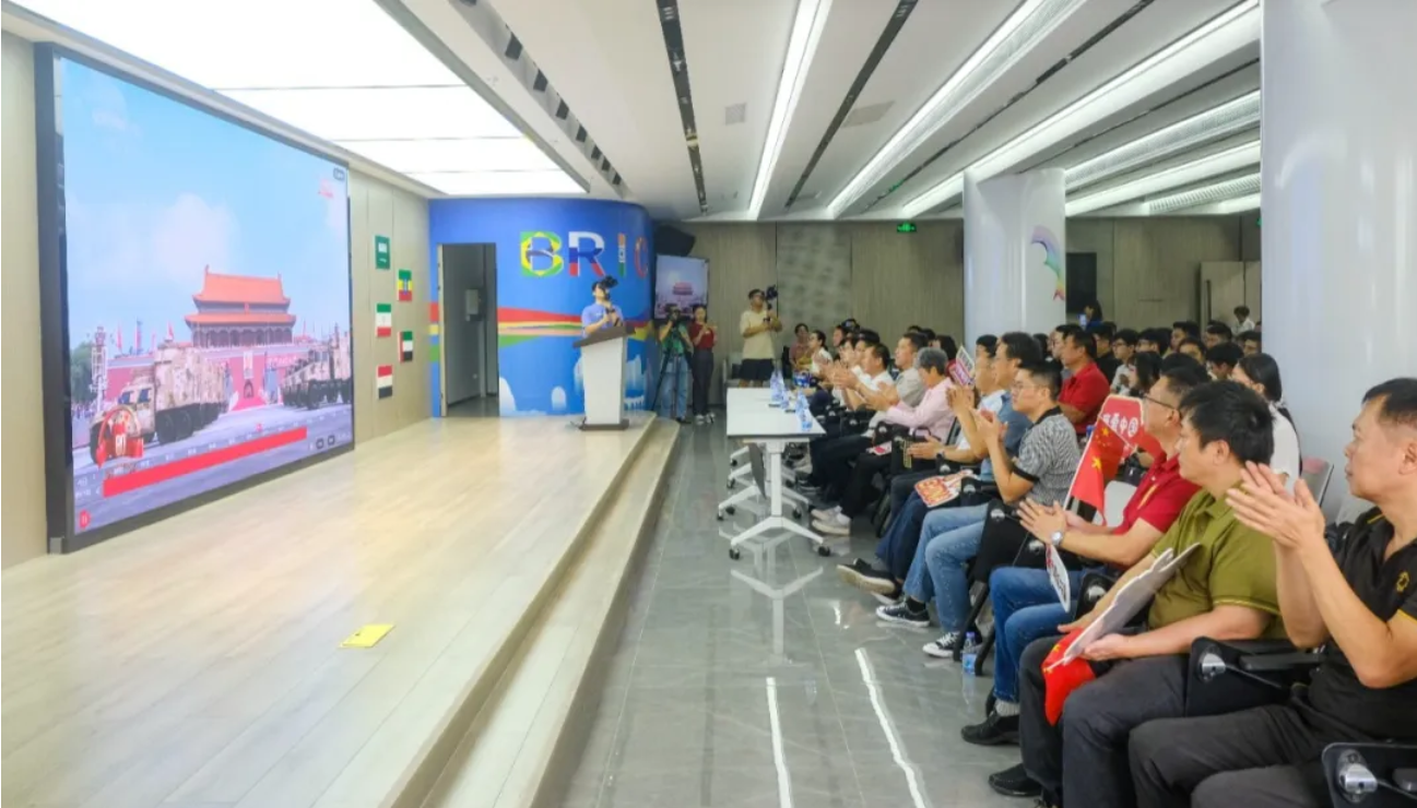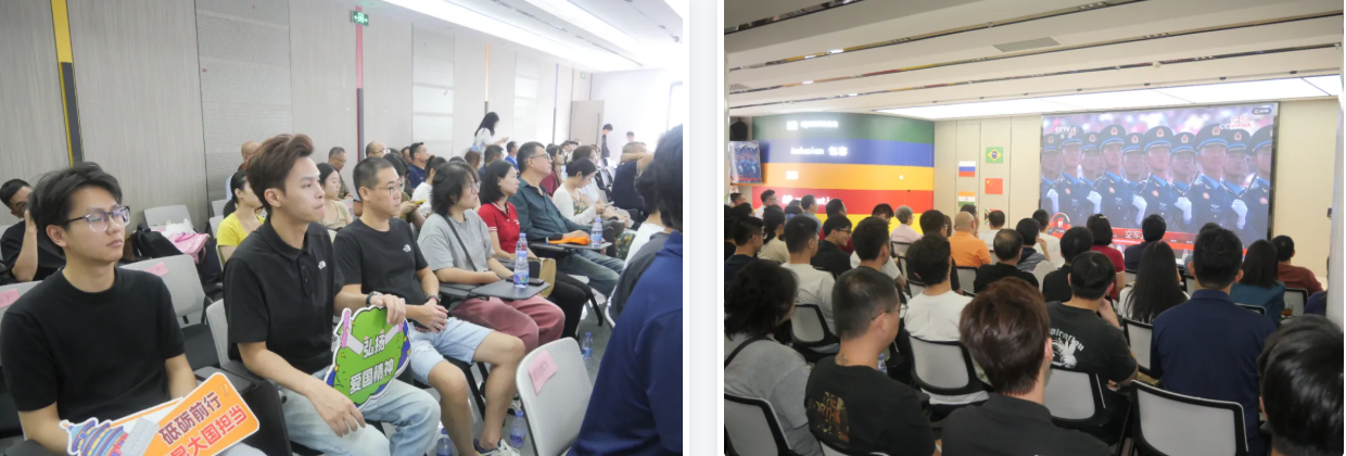 为弘扬爱国主义精神,增强台胞台青的国家认同感、民族自豪感和历史使命感,湖里区委台办组织了全区台青、台胞超150余人在海西MCN两岸青年三创基地会议室,现场观看纪念中国人民抗日战争暨世界反法西斯战争胜利80周年阅兵式直播。