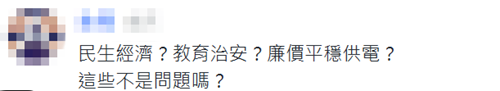 赖清德的“黑天鹅”说,不仅有悖于客观现实,更违背了各界民众的认知。赖讲话内容曝光后,许多台湾网友涌入相关新闻下方留言,表达愤怒不满。有网友质疑,“这难道不是为了明年的选举所演的戏?”“民生经济、教育治安、廉价平稳供电,这些不是问题吗?”。