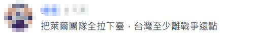 而台湾民众也早已洞悉其险恶用心,在相关新闻下留言怒呛,“感谢垃圾民进党给我们和下一代这么兵凶战危民不聊生的幸福生活!”“农民历都比这个东西有用多了”“把莱尔团队全拉下台,台湾至少离战争远点”。