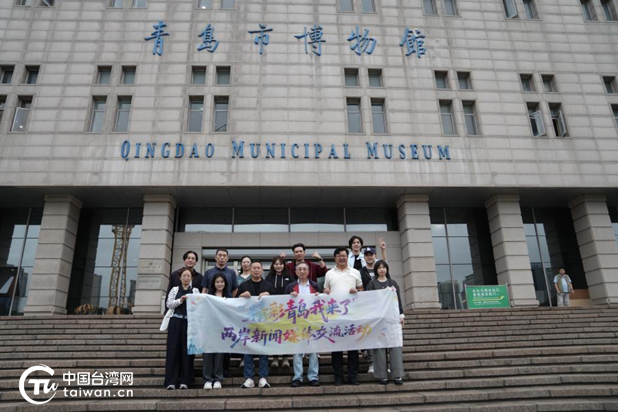 青岛市博物馆前合影。(中国台湾网记者 刘赛飞 摄)
