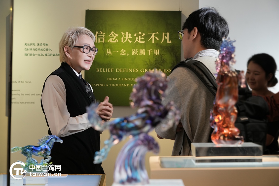 “信念决定不凡——从一念,跃腾千里”杨惠姗琉璃马雕塑作品特展在上海揭幕。(中国台湾网 发)