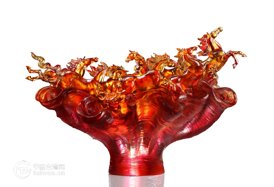 琉璃马雕塑作品《如水,驰骋不息》。(中国台湾网 发)