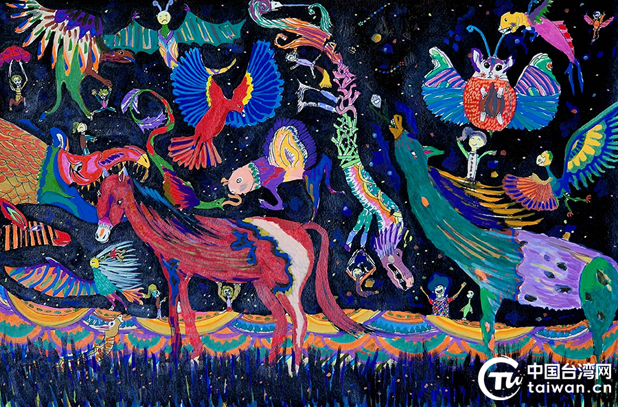 《夜空中的神秘派对》--北京8岁小朋友杨迄的作品。(中国台湾网发)