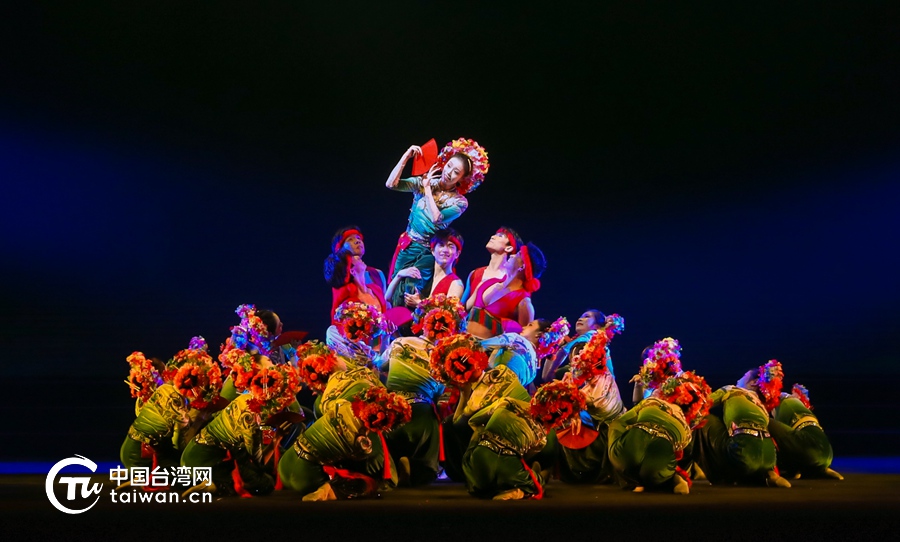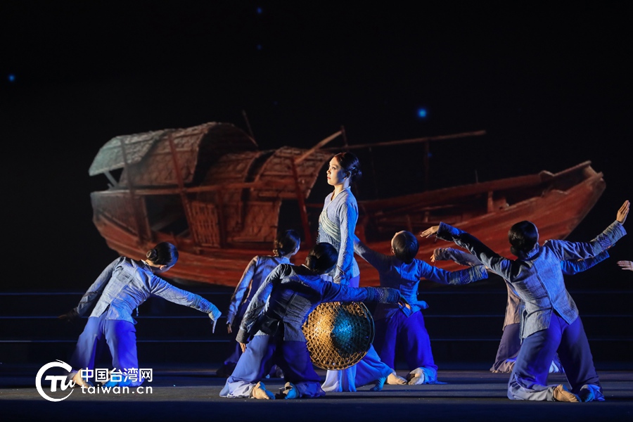 紧接着,洋溢着闽南风情的舞蹈《一围簪花一湾峡》上演,借助“簪花围”这个承载渔家人情感和记忆的文化符号,述说蟳埔渔家女子与台湾高山族男子相遇、相知、相许的海峡情缘,传递出海峡两岸各族同胞血脉相连的深情厚谊与盼望团圆的美好愿景。