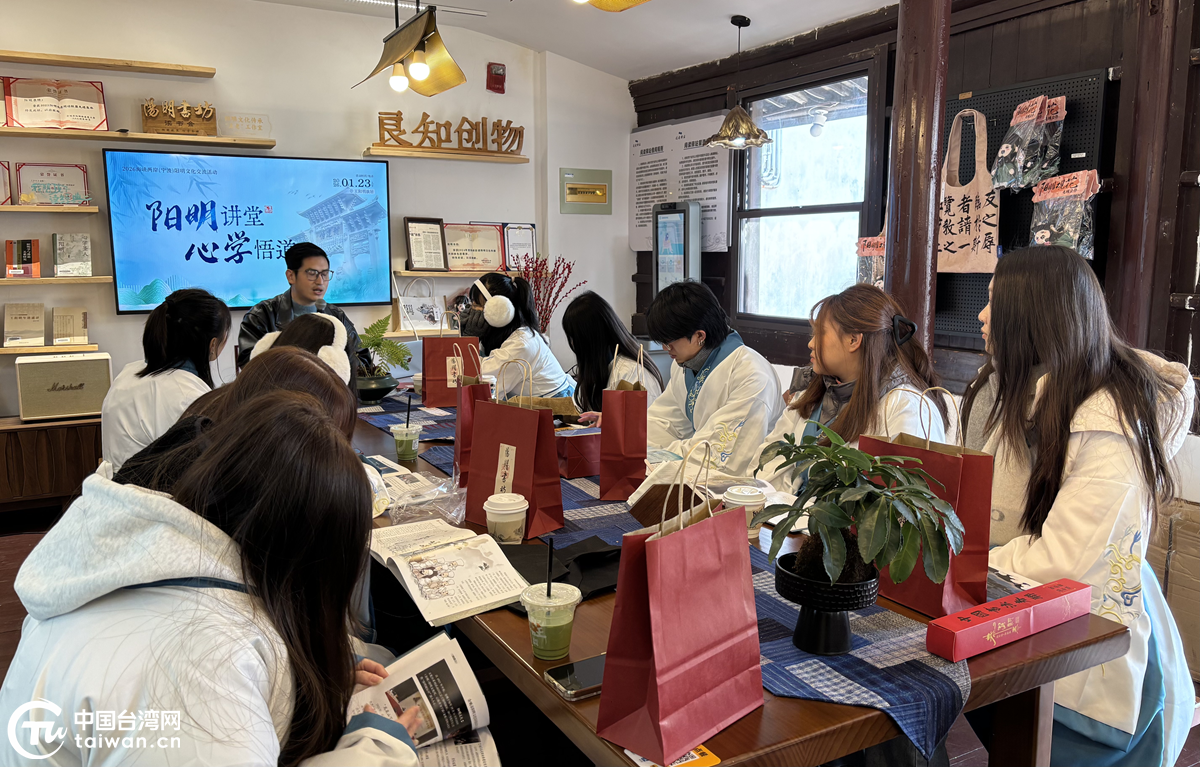 台湾青年在阳明书坊与阳明文化推广者围坐交流。(中国台湾网记者 刘琳 摄)