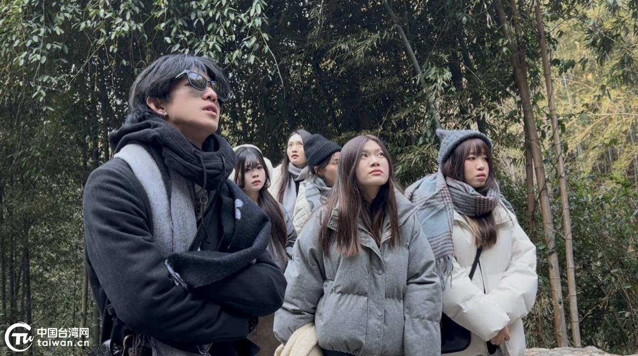 台湾青年在四明山的白水冲瀑布前,听诵王阳明诗作《四明观山水》。(中国台湾网记者 刘琳 摄)