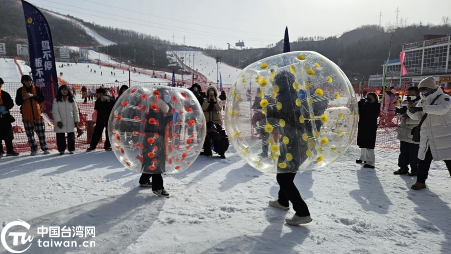 台湾青年在雪地玩游戏。(中国台湾网记者 李宁 摄)